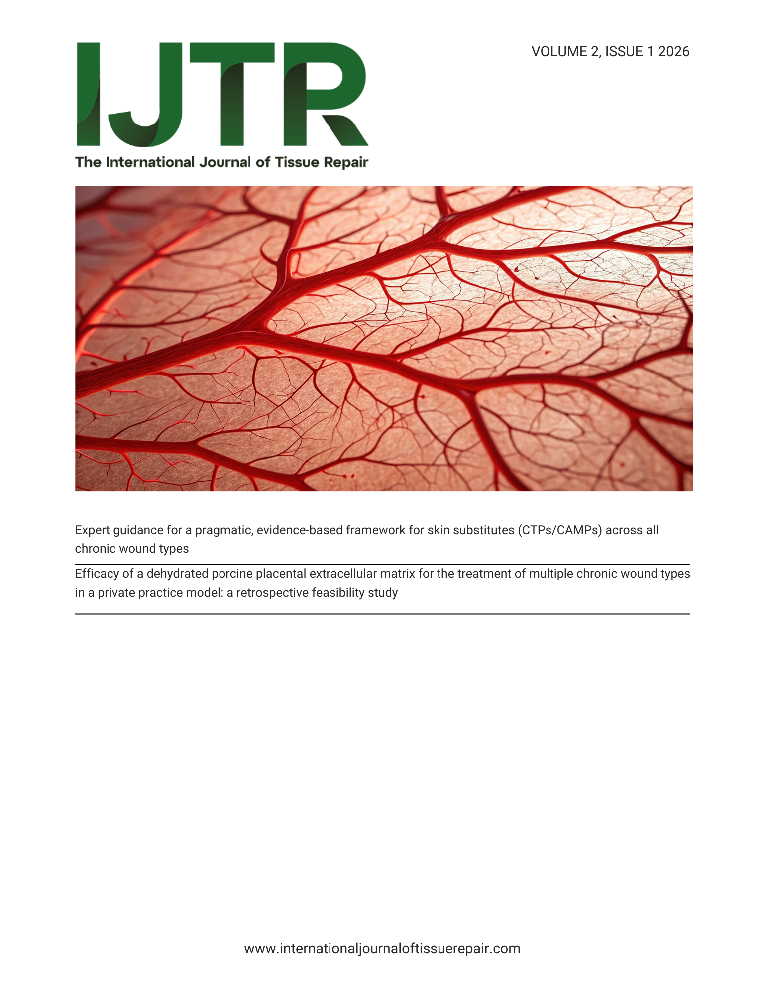 The International Journal of Tissue Repair (IJTR) is a global, open-access, peer-reviewed journal focused on cutting-edge research in wound healing and tissue repair, especially in the Cellular, Acellular, Matrix-like Products (CAMPs) space. IJTR publishes a wide range of content, including research articles, reviews, clinical trials, and guidelines. Supported by international experts, IJTR serves healthcare professionals dedicated to advancing wound care and tissue repair.
